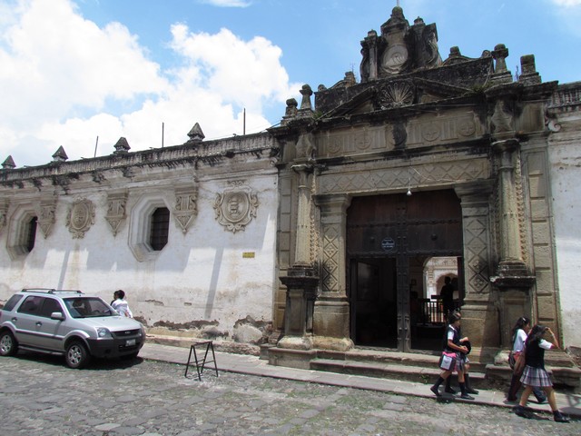 Fachada bonita Antiga Universidade San Carlos Patio da antiga Universidade San Carlos Edifício ao lado da antiga universidade