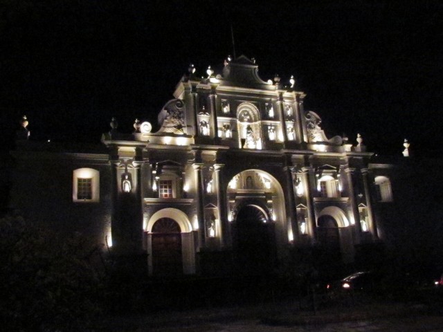 Porta da catedral Detalhe da fachada da catedral Mesmo detalhe à noite Parque central visto da Catedral