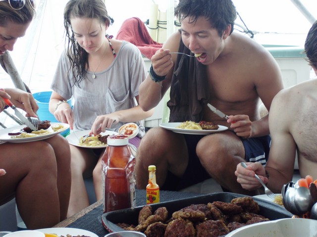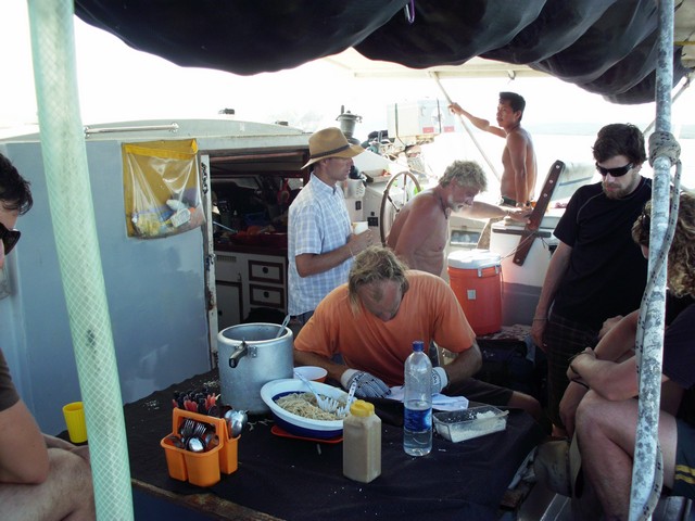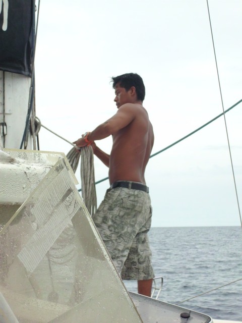 O capitão Roland e alguns passageiros Na partida mais um ... ,,, forte de Cartagena Agora as duas velas içadas