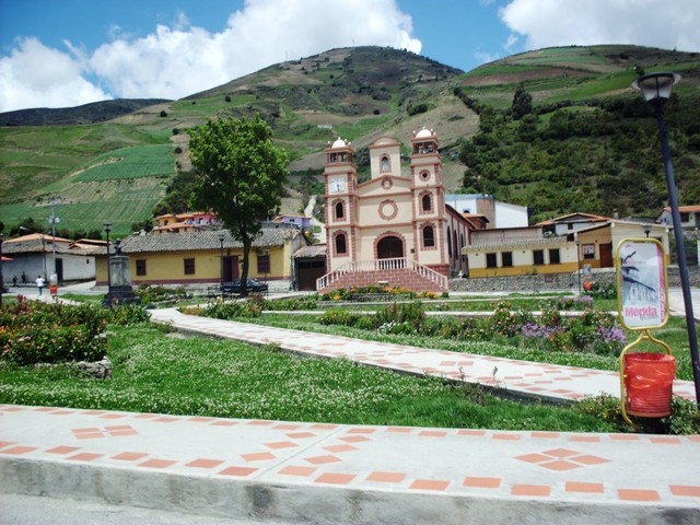 A estrada é uma sequencia de vilarejos Praça de um dos vilarejos E também se planta nas montanhas Hotel estranho em Mucuchies