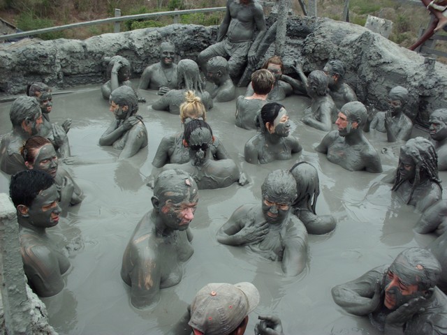 O programa consiste em subir esse vulcão e tomar um banho de lama, acompanhado de massagem aplicada pelos nativos que moram em torno e exploram o turismo no 'vulcão'.